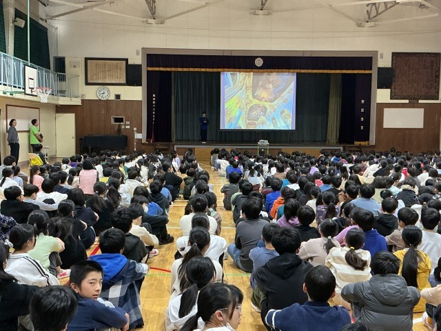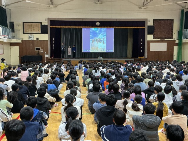 今日の全校朝会では、世田谷区の小学生海外派遣事業でオーストリアに行った5年生と、オーストラリアに引率で参加した教員がその時の様子を発表しました。建築物や食事、学校などを写真を見せながら紹介しました。それぞれの国の様子や文化がよく分かり、日本のよさも感じられました。「きれい」「おいしそう」と、みんな興味をもって聞いていました。