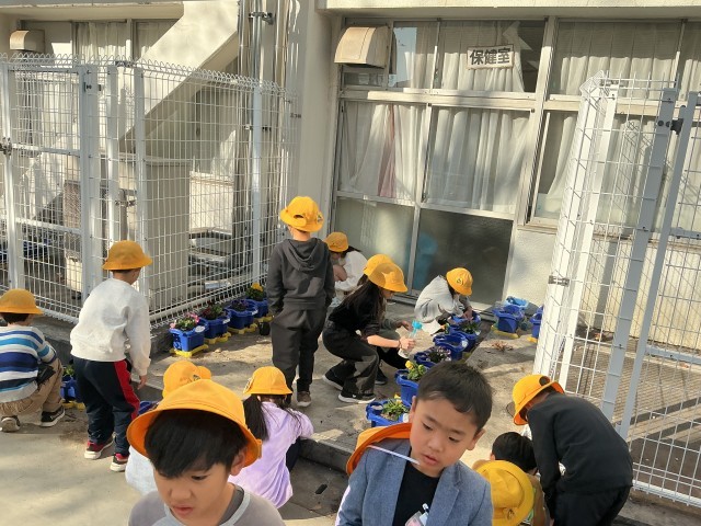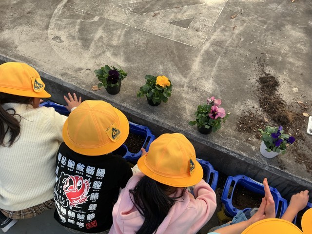 生活科の学習でパンジー、ビオラを植えました。植えたい花をそれぞれが決め、苗が届いたので植えました。寒い日が続きますが水やりを欠かさずに行っていきます。見頃となる3月が楽しみです。