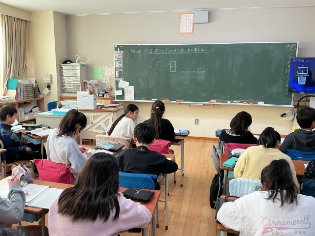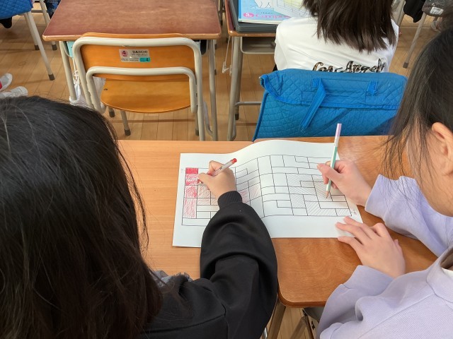 4年生の算数では面積の学習が始まりました。同じ長さの12本の辺で囲んだ図形の広さを比べたり、陣取りゲームをしてどちらの陣地が広いか考えたりしました。面積を比べる方法を話し合ってみんなで考えました。