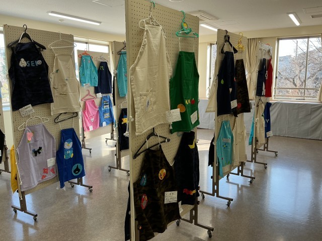 6年生も2学期の家庭科の学習でエプロンを作りました。5年生のときの経験を活かして丁寧にミシンをかけたり、刺繍をしたりして、一人一人が完成のイメージをしっかりもって作りました。展覧会で展示できなかった分の気持ちが伝わります。作品は、新校舎2階の生活科室に展示してあります。ご覧ください。