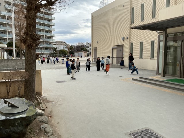 3学期の学校公開期間は、本日が最終日です。1年生の様子です。1組は、体育館でボールを使った鬼ごっこをしていました。2組は、わらべ歌に親しみ、歌いながらなわとびをして楽しんでいました。3組は、生活科の冬さがしの学習をしました。担任が入れ替わって学習をしていましたが、3クラスとも楽しそうでした。