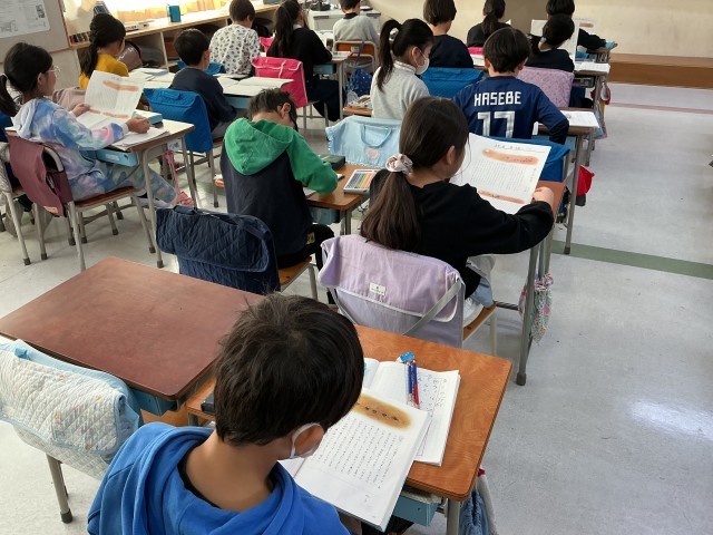 3年生は「ありの行列」という説明文の学習をしています。今日は、全体をはじめ・中・終わりに分けた「中」に着目して、どのようなことが書かれているかまとめました。大事な言葉は何か考えながら読んでいました。