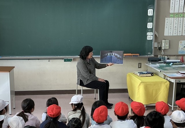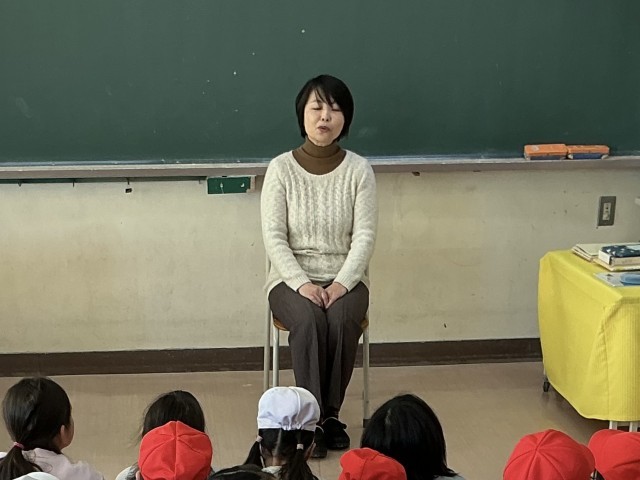 おはなし広場の方々に来ていただき、読み聞かせをしていただきました。子どもたちはお話に夢中になり、楽しそうな様子で聞いていました。思わず声が上がる場面もあり、楽しい時間を過ごせました。プログラムを持ち帰りますので、ご家庭でも一緒に読んでみてください。