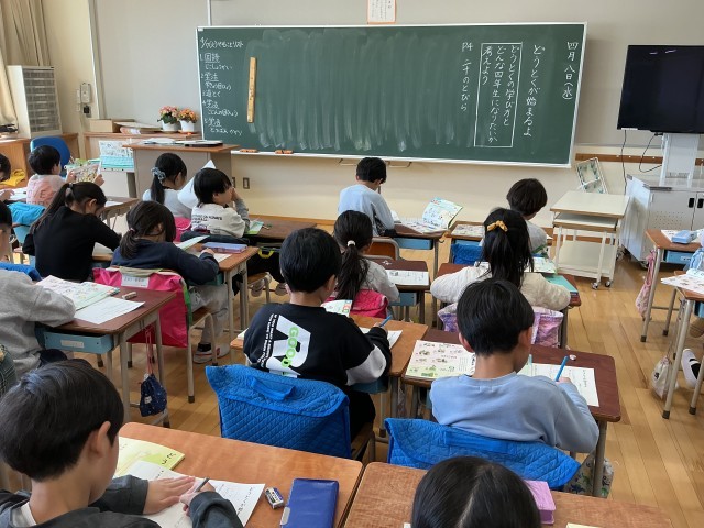 3年生の教室を覗いてみると、1学期のめあて考えたり、みんなで係活動を話し合ったり、自分を見つめて考えたりしていました。どのクラスも静かに集中して取り組んでいました。