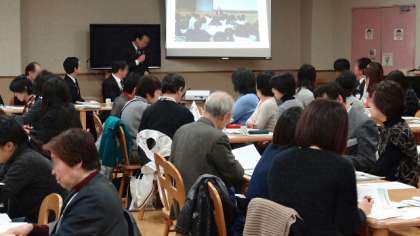 28日(水)15:00から、船橋小学校を会場に「船橋希望学舎 合同学校協議会」が開催されました。船橋希望中学校、希望丘小学校、船橋小学校、千歳台小学校で構成する船橋希望学舎に関係する学校協議会の皆様が一同に会して、教育支援、青少年健全育成、防災・防犯等について意見交流し、地域としての一体感をもって子どもたちを育てていこうという会です。お忙しい中、多くの学校協議会員の皆様にお集まりいただきました。最初に区教育委員会より、教育施策について説明し、続いて、船橋希望学舎の取り組みについて画像を交えて説明しました。