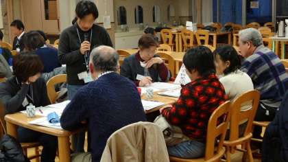 教育活動について認識を深めていただいたところで、後半はグループにわかれて意見交換の会を行いました。各グループとも、活発なお話し合いをしていただき、最後には各グループで出た意見を発表してもらいました。何かの結論を出すという性格の会ではありませんが、各学校に関わる方々がお互い知り合い、見通しをもつことにこの会の価値があると考えています。お忙しいところ多くの皆様にお集まりいただいたことに感謝いたします。