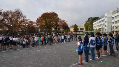 30日(金)、11月は今日で終わり。朝の雨上がりの校庭でなわとび集会をしました。体育委員会が中心になって進めます。最初に、あやとびや二重跳びなどの見事な見本を見せ、みんなから大きな拍手をしてもらいました。はじめに、みんなで3分間続けて跳ぶことに挑戦。たかが3分間といっても、けっこう息がきれます。