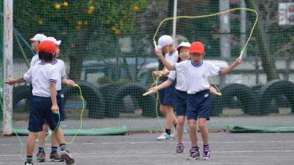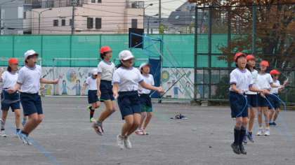 30日、朝になわとび集会を行ったばかりですが。体育の時間や、休み時間になわとびをする子どもたちの姿が見られました。なわとびは全身をバランスよく動かす運動です。ぜひこの機会に取り組んでほしいと思います。今年度から、区からの「とびなわ」の無償支給はなくなりましたので、各家庭でそろえていただければ幸いです。その際、なわの長さが調整できるもの、跳びやすい物を選んでください。お願いします。道具を使う運動ですので、そのよしあしで上達具合がちがってきます。よろしくお願いします。
