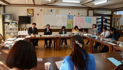 授業の後はランチルームで授業について話し合い、講師の先生の指導を受けました。よりよい授業を行うため、教員もがんばっています。