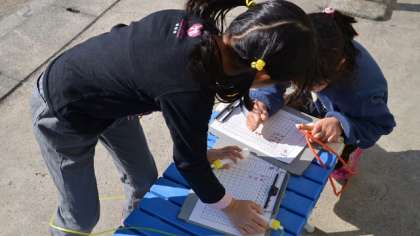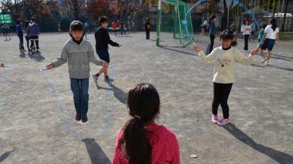9日中休みのようすです。なわとび週間は昨日で終了しましたが、子どもたちは熱心になわとびに取り組んでいます。全校児童にカードが配られていて、技ができるようになって回数を跳べるようになるとチェックしています。短期間ですごく上手になった子がいます。自主的に意欲をもって取り組めているのがいいですね。