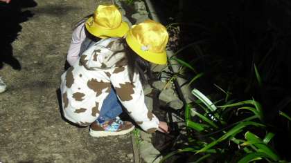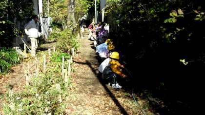ていねいに指導していただいたおかげで、子どもたちみんなが自分の力で笹舟を作ることができ、さっそく小径の水路に流してみました。自然の材料を使って手作りしたものが、水に浮いて流れるようすに、子どもたちは大喜びです。小径の会の皆さんにお礼を言って、学校に大事に持ち帰りました。