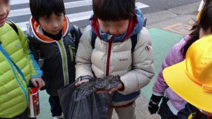 12日(水)朝はぐっと冷え込んで真冬の寒さでした。昨日霜柱をもってきた子を紹介したからというわけではないと思いますが、今朝も子どもたちが大発見した霜柱や氷を手のひらにのせて次々と登校してきました。手のひらがとっても冷たいと思うのですが、「見せたい」という思いで、冷たさをがまんしてもってくる気持ちがとてもうれしいですね。
