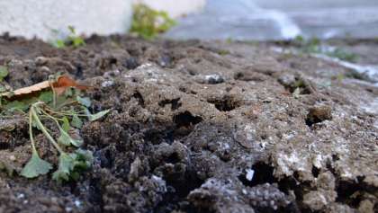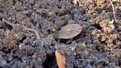 12日の校庭。あちらこちらで霜柱で持ち上げられた土が・・・冷え込んだのですね。今年は秋の訪れが遅かったのに、冬が駆け足でやってきました。