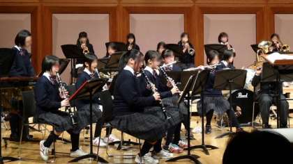 続いて船橋希望中学校の吹奏楽部が友情出演で、4曲を披露しました。アップテンポな曲も次々と見事に演奏し、締めは、映画「パイレーツ・オブ・カリビアン 生命の泉」。スケールの大きな曲をしっかりと演奏し、会場が大きな拍手につつまれました。