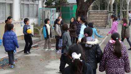 17日昼休みのようすです。今日はどんよりして時折雨が降る天気。昼のこの時間はたまたま雨が止んだので、校庭で遊べるようになりました。暗い空を吹き飛ばすような元気な子どもたちの声。4年生は今日から久しぶりに戻ってきた子の歓迎で、クラス遊びをして楽しくすごしていました。