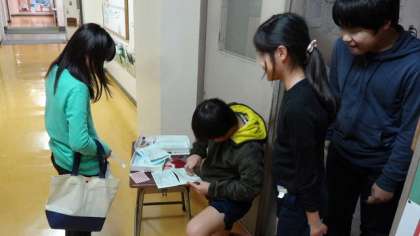 休み時間にエコ委員会が、ペットボトルキャップや牛乳パックの回収の仕事を交代でしています。回収するごとにカードに記録して、多く集めたクラスは毎学期学校から表彰しています。そのためか、最近はどのクラスも回収に力が入っているようです。決して競争ではありませんが、目標をもって協力する気持ちはうれしいですね。エコ委員の皆さんもありがとう。