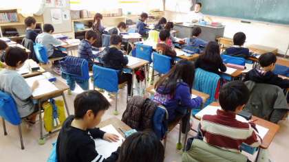 18日、2年生の算数授業のようすです。かけ算九九を覚え、その確かめをしているところです。席をまわってみましたが、ほとんどの子がよくできています。後半は九九の応用で、10×10、11×11などにもチャレンジ。すかさず答えられる子もいて感心しました。