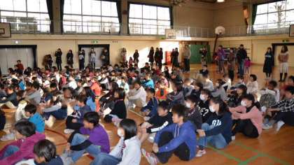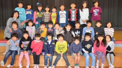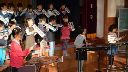 一生懸命の演奏に、2〜6年生も聞き入っています。今日は保護者家族の方も大勢いらっしゃって、1年生は大満足。最後にそろって記念撮影をしました。4月からしっかり成長した1年生です。