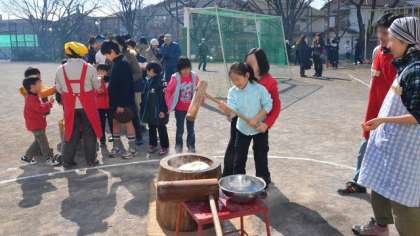 遊び場開放委員会の主催で餅つき大会がありました。5・6年生は校庭で「みかぐら」を披露し、参加した保護者・家族、地域の方から大きな拍手をいただきました。2月末、東京にも雪が降り、登下校が大変だったのを覚えていますか?そのため、しばらく校庭が使えなくなってしまいました。今日は1・2月をお送りしました。明日は年度末の3月、そして1年生が入学して、みんなも学年が進級した4月のようすをお送りします。