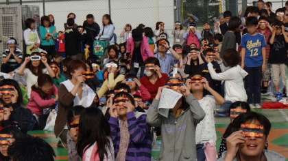 5月のハイライトは宇宙の神秘をみんなで感じた5月21日の金環日食ですね。朝、校舎の屋上に集まりみんなで一緒に見ました。曇り空でどうなるかなと思っていましたが、雲の間からリングが見えたときは思わず歓声があがりました。
