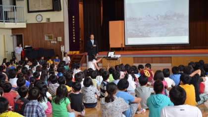 6月15日は開校記念日。39周年を集会でお祝いしました。来年は40周年。式典をはじめとして様々なイベントを計画しています。ご支援お願いします。6月はプール開きもありました。ひっそりしていたプールに水音と歓声があがりました。秋の運動会にむけて「みかぐら」の練習が始まったのもこの頃です。6年生が師匠になって5年生の弟子に教えました。