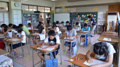 保護者の皆さんにお手伝いいただいて漢字検定を行いました。合格した皆さんおめでとうございます。さらに上の級をめざしてがんばってください。交通事故の防止のため、通学路の点検も行いました。その結果はすぐに生かされて、道路標示などの工事が行われました。校庭の芝が夏の間にぐんぐん伸びて、芝刈りが大変でしたが、一生懸命管理したので、新学期を迎える頃には、すばらしいコンディションになりました。きれいな芝生は希望丘小の自慢になりました。