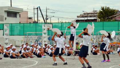 29日に運動会を行い練習の成果を発表しました。今年は職員がそろいのポロシャツで、チームワークを示しました。応援団はこの日まで毎朝練習をつんで、運動会を盛り上げました。