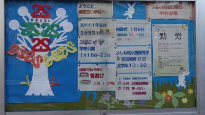 希望ヶ丘通りに面した正門前の掲示板が、新年の仕様になりました。今年も様々な情報を掲示板で発信します。通りがかりの際には、ぜひご覧ください。