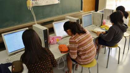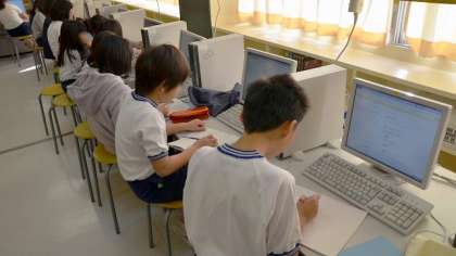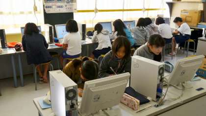 10日、4年生の国語の授業です。「故事成語」をwebサイトで調べ、それぞれ5つ選び、この後教室に戻って意味をよく調べます。そして、その内容にあった「お話」を創作するという学習です。どんな話ができるか楽しみですね。