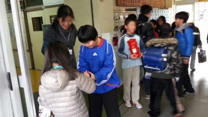 12日は第二土曜日で授業日です。朝の登校時に、児童会運営委員と代表委員がユニセフ募金を行いました。昨日の集会で話を聞いて、登校してきた子どもたちや教員が募金をしました。来週も募金を受け付けます。ご協力よろしくお願いします。