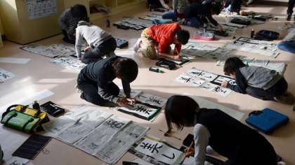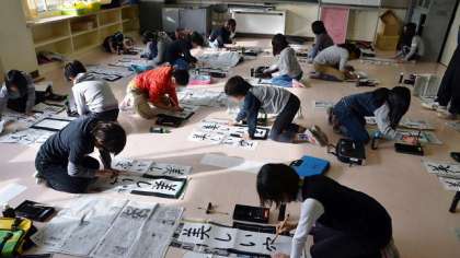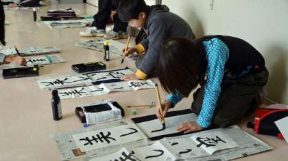 12日、4年生が書き初めをしました。文字は「美しい空」。どの子も集中して取り組んでいました。これで書き初めはすべての学年で終了。来週の学校公開週間で各学級に展示します。
