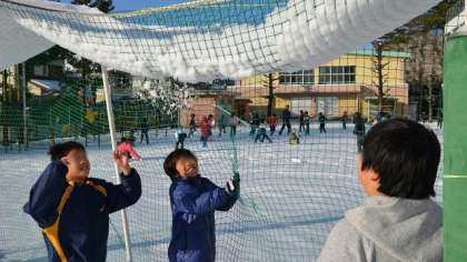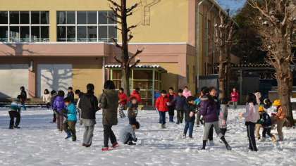 15日1時間目、全校一斉に雪遊びをしました。朝は雪の表面が少し凍っていたので、いろいろな遊び方を工夫していました。真っ白な雪原で遊んでいるような景色。とても楽しそうでした。