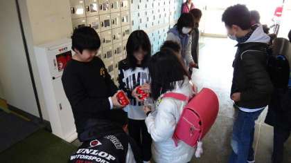 朝早くからみんなより早く登校してくる児童会役員。登校してくる子どもたちにユニセフ募金を呼びかけています。そのおかげで、いつもより多めに募金が集まっているようです。学校公開週間受付にも募金箱を設置していますので、お志をお願いします。