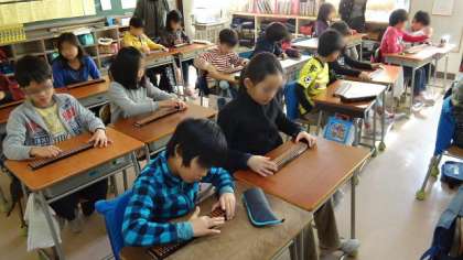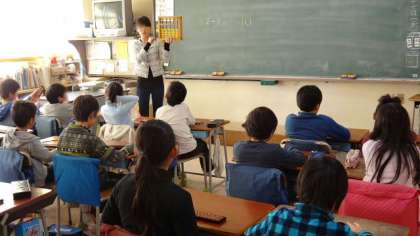 学校公開週間の17日、3年生は講師の先生をお招きして、そろばんの指導をしていただきました。はじめてそろばんにふれる子もいましたが、1時間でなんとか簡単な足し算ができるようになりました。計算力をつける意味でもそろばんは効果的です。これを機会に習ってみるのはいかがですか。