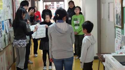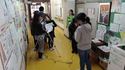 5年生がNHK放送センターに出かけて、番組作りを体験するため、素材映像づくりに取り組んでいます。カメラマンやリポーターなどの役にわかれて本格的です。