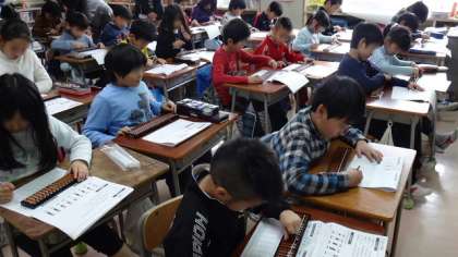 3年生、算数のそろばんの授業です。そろばん専門の先生を講師にお招きして行った2回目です。前回に比べてそろばんの珠をはじく姿もさまになっています。簡単な足し算引き算ができるようになりました。保護者の方も参観してくださいました。
