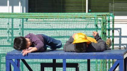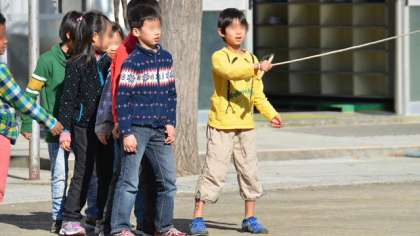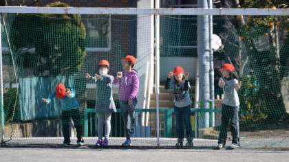 29日、朝は冷え込んで寒かったのですが、昼頃には風もやんで、日差しがまぶしいほどの校庭は、ポカポカと暖かくなりました。子どもたちがのんびりと、そして、元気に遊んでいます。