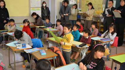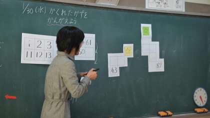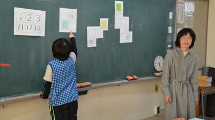 自分で考えたことを、みんなにわかるように表現できるようにすることも目標です。パズルの答えをどうやって解いたかを、子どもたちは一生懸命説明しました。たくさんの教員に囲まれて、子どもたちも緊張したかと思いますが、よくがんばった1年生です。授業の後は、ランチルームに教員が集まり、よりよい授業をするために熱心に意見を出し合いました。