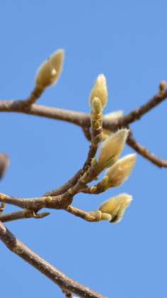 2日(土)は、この時期としてはとても高い気温になりましたが、3日(日)は、日差しは暖かいものの、気温は平年並みにもどり、春はまだ遠いようです。それでも春の足音は着実に近づいているようです。よく見ると木々の芽がふくらんでいます。左から、カリン、ソメイヨシノ、ハクモクレンです。