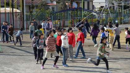 4日中休み、2・3・4年生が長なわとびを競い合うようにして練習していました。15日金曜日朝の集会で、長なわとび3分間で何人跳べるかを競い合います。力をあわせてがんばりましょう。