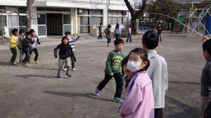 2年1組と5年2組のインフルエンザによる学級閉鎖が昨日で終了して、土曜授業日の今日は全学年全学級がそろいました。欠席はいつもより多いものの、中休みは、北風が校舎で遮られるため暖かい校庭で、子どもたちが元気に遊んでいました。学級閉鎖からあけた2年生は、みんなで長なわとびをしました。