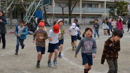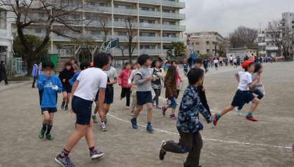 今週18日から、インフルエンザ流行のため延期していた「持久走週間」を行っています。今週の中休み、最初の5分間はみんなで校庭を走ります。今日は肌寒い曇り空の下で、子どもたちが各自の目標をもって持久走に取り組みました。今週は、上着を脱いで走りやすいような服装をさせてください。