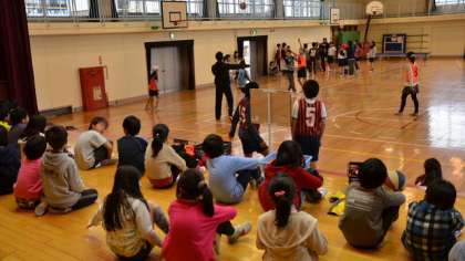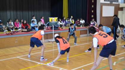 18日(月)6校時、3年生がクラブ見学をしました。「クラブ」は4年生から自分で選んで所属し活動します。その下準備として、クラブのようすを実際に見て、希望するクラブを決めるのが目的です。3年生はみんなで並んで各クラブの活動を見ました。今日はあいにく小雨が降っていたので、いつもは校庭で活動している「バスケットボールクラブ」と「サッカークラブ」は体育館内での活動でした。いつも体育館で活動している「運動クラブ」も一緒だったので、混み合った中での見学でした。それでも先輩たちの活動ぶりを見て、ワクワクしているようすが見られました。図工室では「工作・科学クラブ」が活動していて、作ったばかりの「変形飛行機」で一緒に遊ばせてもらいました。