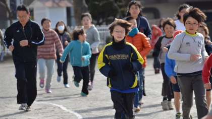 今週は持久走週間です。19日は雪が降っていたためできませんでしたが、20日今日は晴れ渡った空の下、中休みに子どもたちが元気に校庭を走りました。低学年の子どもたちもよく頑張って周回数を競っています。高学年も低学年の姿を見て、見本にならなければと意気込んでいます。担任も一緒に走っています。