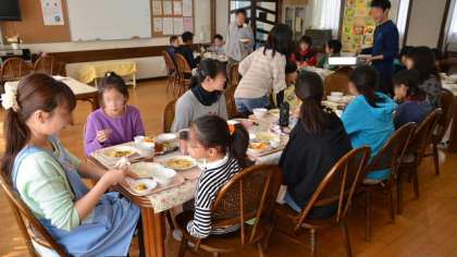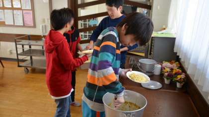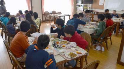 今日は、6年生と一緒に、いつもの担任教諭以外に、校長、副校長、養護教諭、図工専科教諭も一緒に食べました。おいしい給食に楽しい会話、食もすすみます。おかわりもたくさんして、残さず食べました。