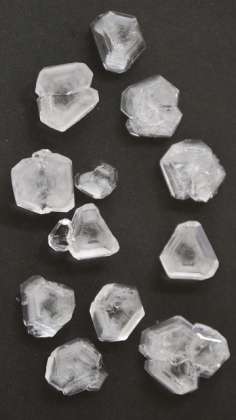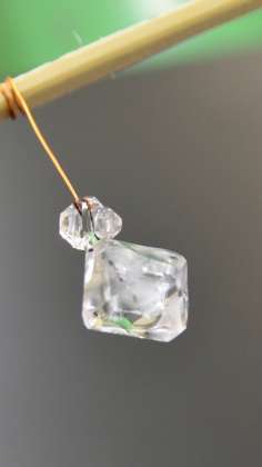 12日に5年1組がミョウバンの結晶作り理科実験の結果です。小さな種結晶の周りについたミョウバンが、大きな結晶になりました。