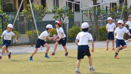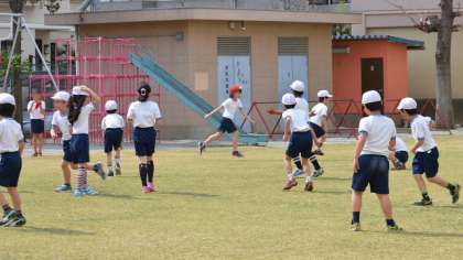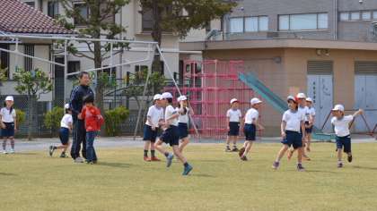 13日は1日中強風が吹き荒れ、外を歩くのも大変なほどでした。4時間目2年生の体育は、あまりにも風が強いので、予定を変えて風が少し弱い芝生の方ですることにしました。それでも風は強く子どもたちに吹きつけます。でも、元気な子どもたちはそんな風の中夢中で駆け回っていました。