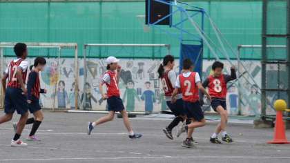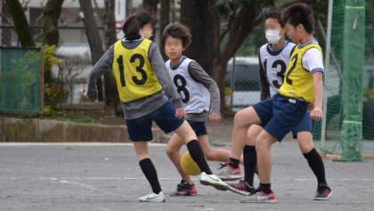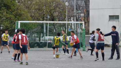 14日、6年生の体育のようすです。男女一緒のチームを作って、ミニサッカーをしました。ゴールを小さく設定してあるので、男子が大きく強く蹴っても、なかなかゴールにはなりません。みんながポジションを考えて、パスをうまく回す工夫をしていました。6年生にとって残り少ない体育の授業です。