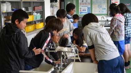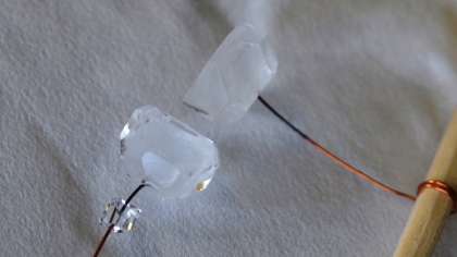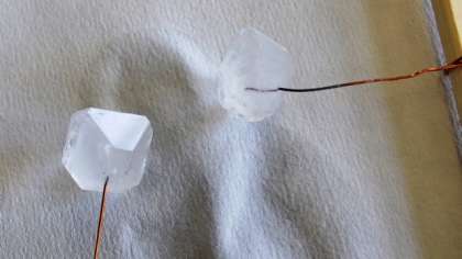 15日5校時、5年2組が昨日セットしたミョウバンの結晶を、理科室に取り出しにきました。どの子も立派な結晶ができあがっていて、互いに見合って感心していました。乾かしてから今日ビニル袋に入れて持ち帰りました。