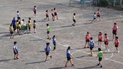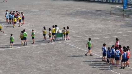 19日午後、5年生がサッカー大会を開催しました。体育でがんばってきたサッカーの学習の成果を競い合います。子どもたちの実行委員会が試合の進行や得点係を行い、チームが2ブロックに分かれて総当たり戦をしました。